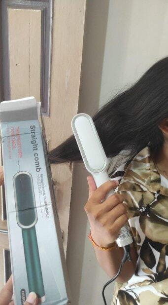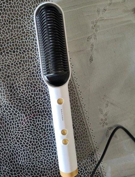 This straightening brush is a game changer! It heats up fast, smooths the hair quickly, and leaves it shiny without burning it. It’s much easier to use than a regular flat iron and saves me so much time. Totally worth it.